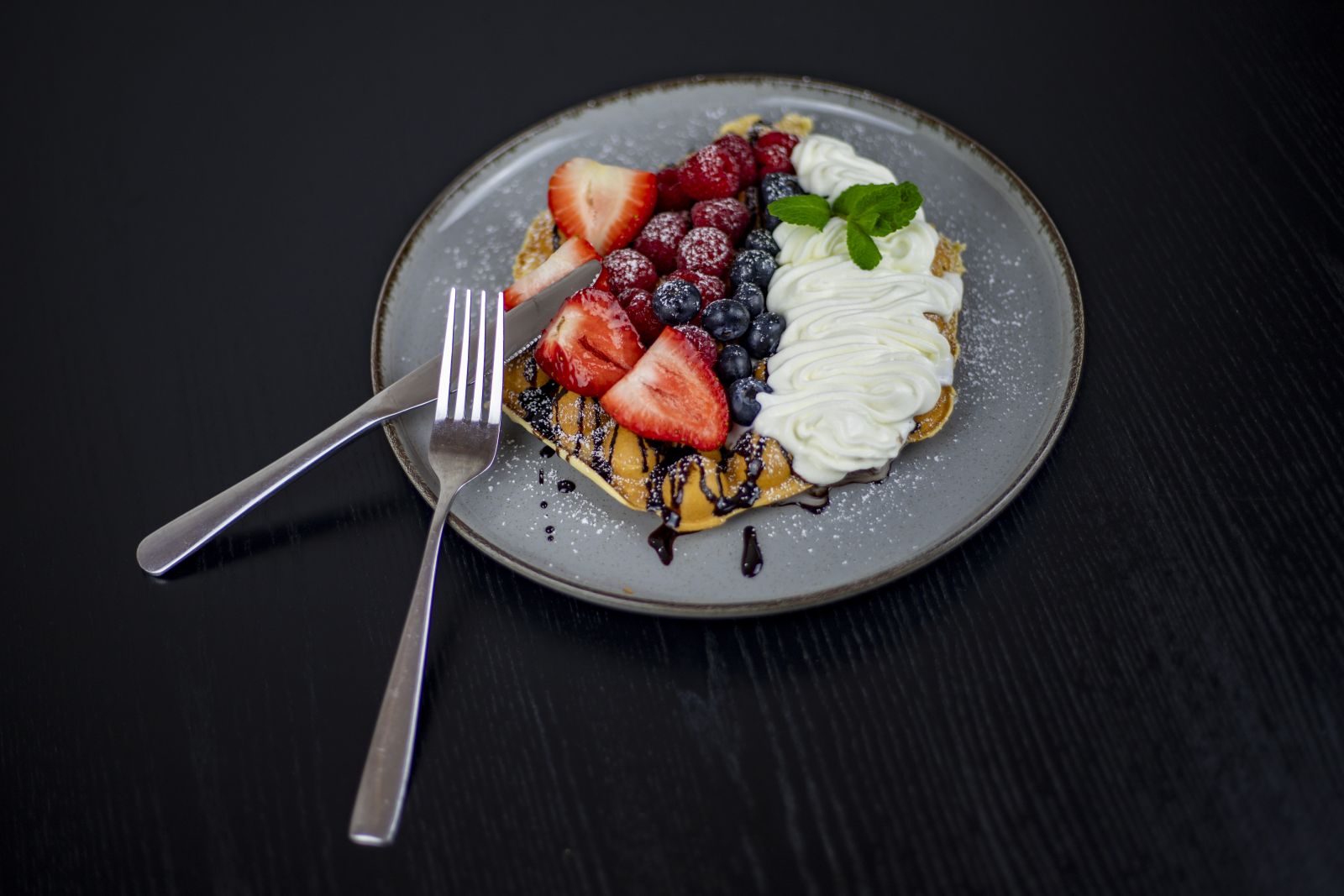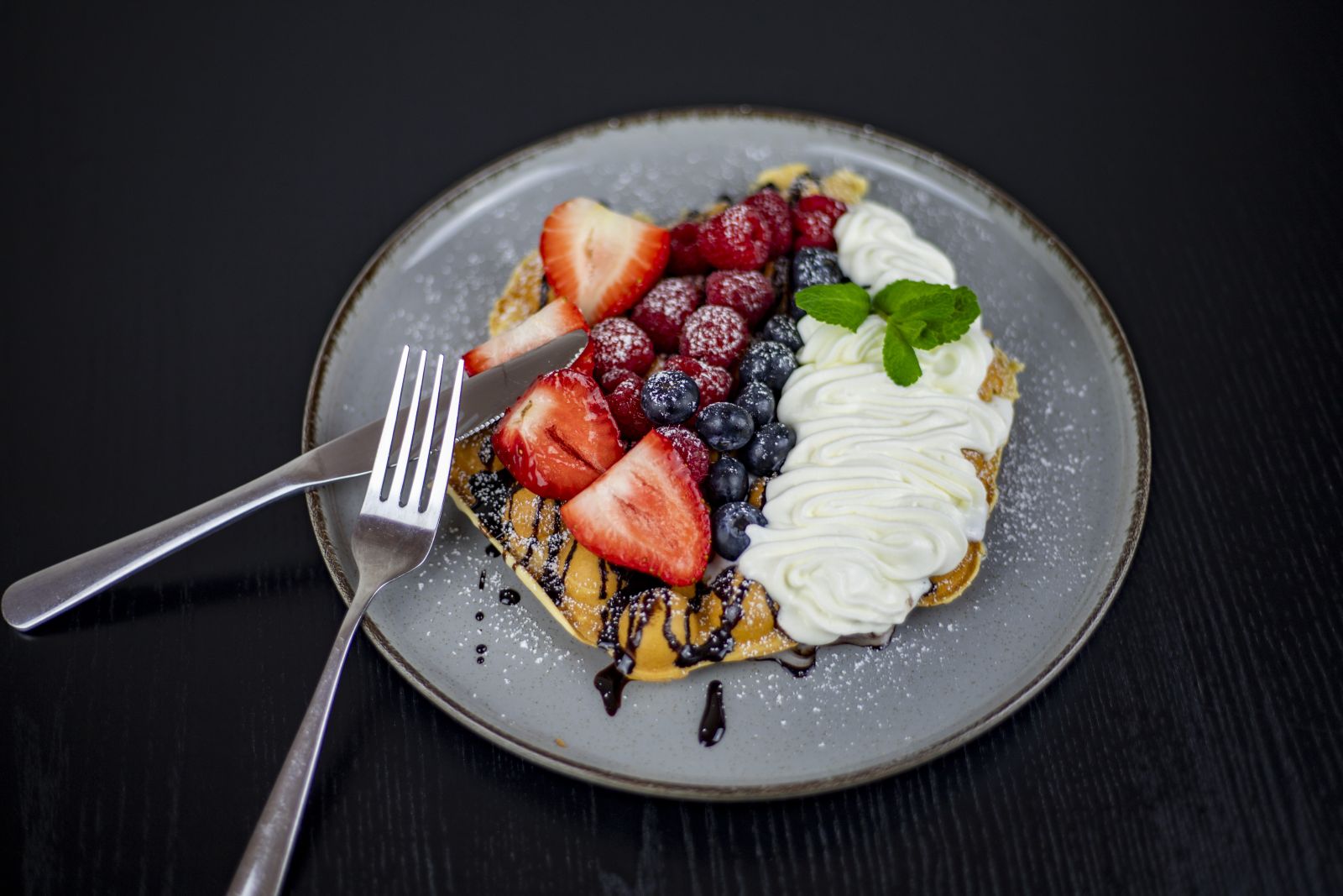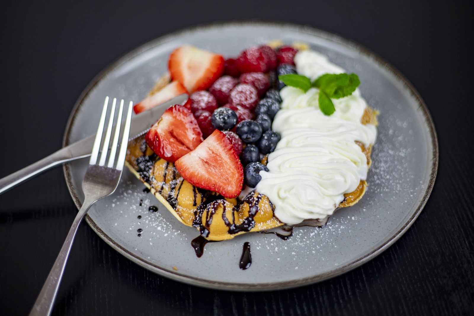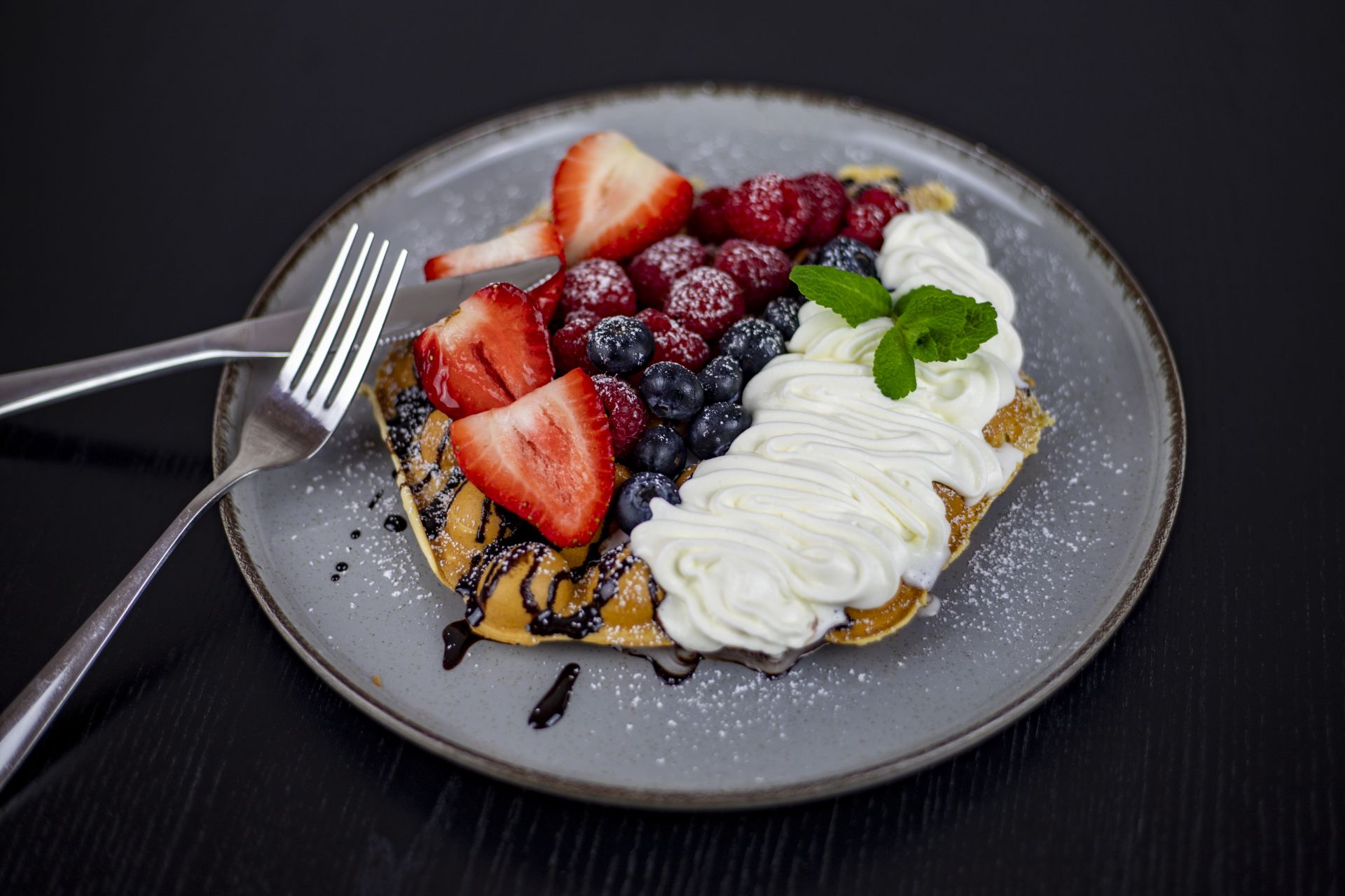 Těsto na vafle si připravujeme vlastní a vafle pro vás upečeme v naší kuchyni.