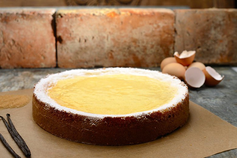 Pečená lahodná směs slazeného tvarohu třtinovým cukrem, vajec a vanilky vylitá do mačkaného ráfku ze sušenek a másla. Veškeré suroviny jsou bez mléčné laktózy. Může být v jakékoliv ovocné verzi.