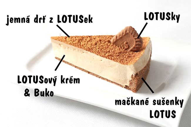 složení: sušenky Lotus, máslo, sušenkový krém, smetanový sýr, metana 34%, cukr