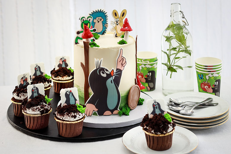 Krteček (jahody a smetana, maliny a mascarpone, čokoláda a banány, mléčná čokoláda)